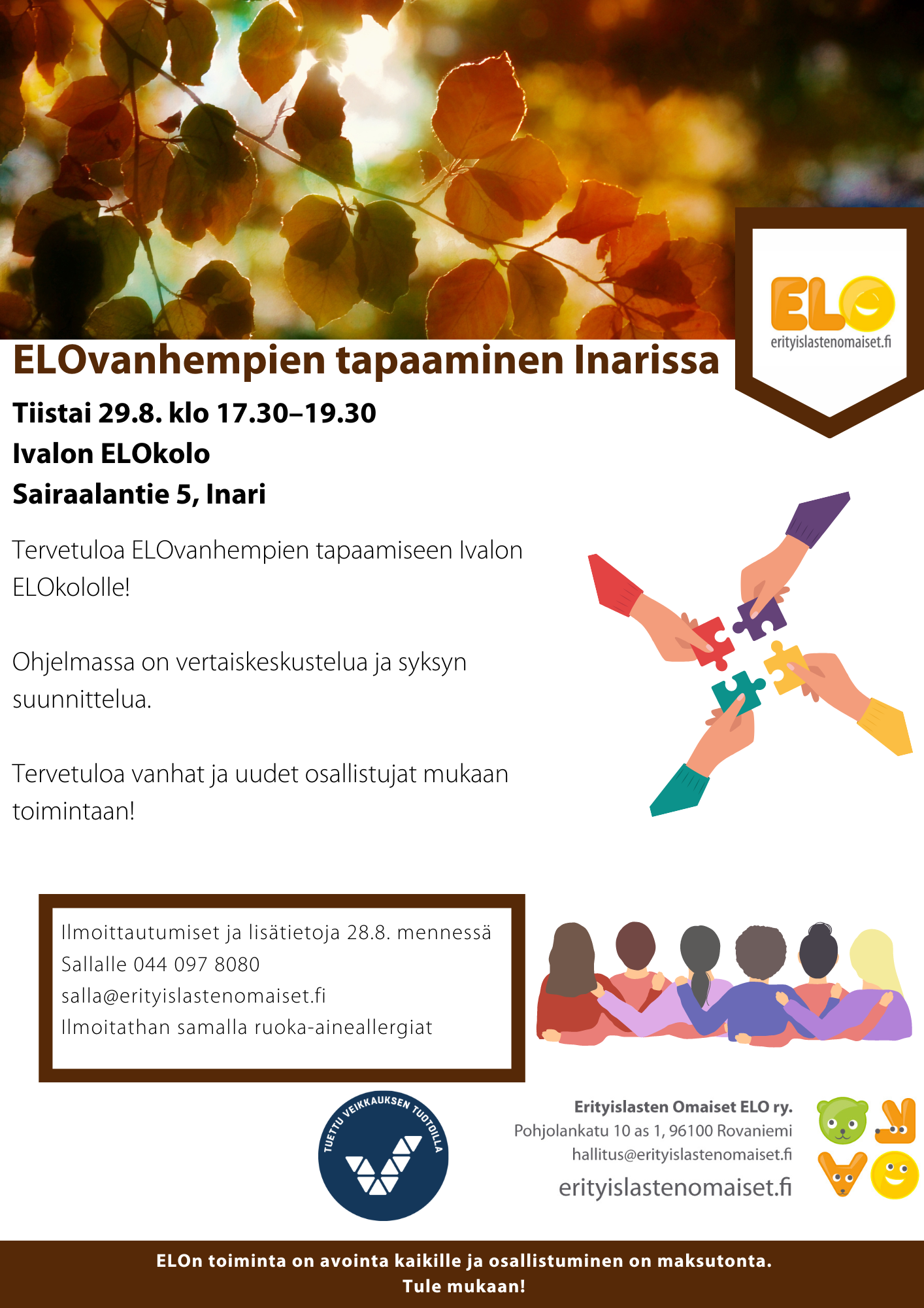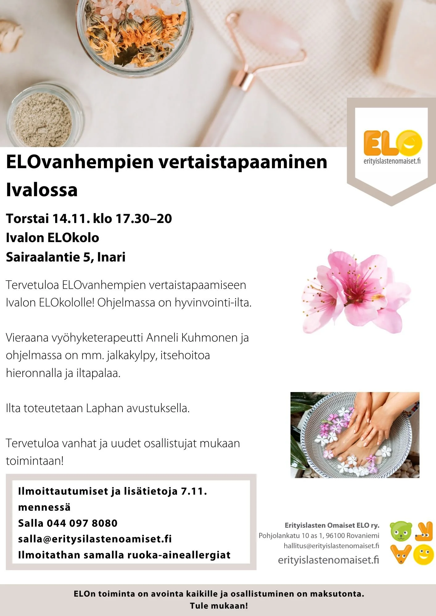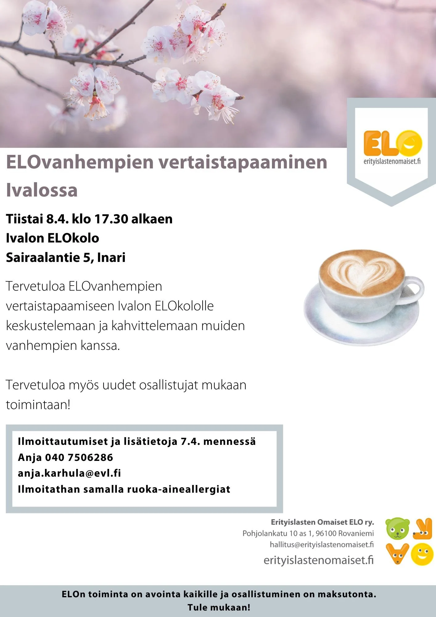 Tervetuloa ELOvanhempien vertaistapaamiseen Ivaloon! Tapaaminen on tarkoitettu kaikille erityislapsien vanhemmille.