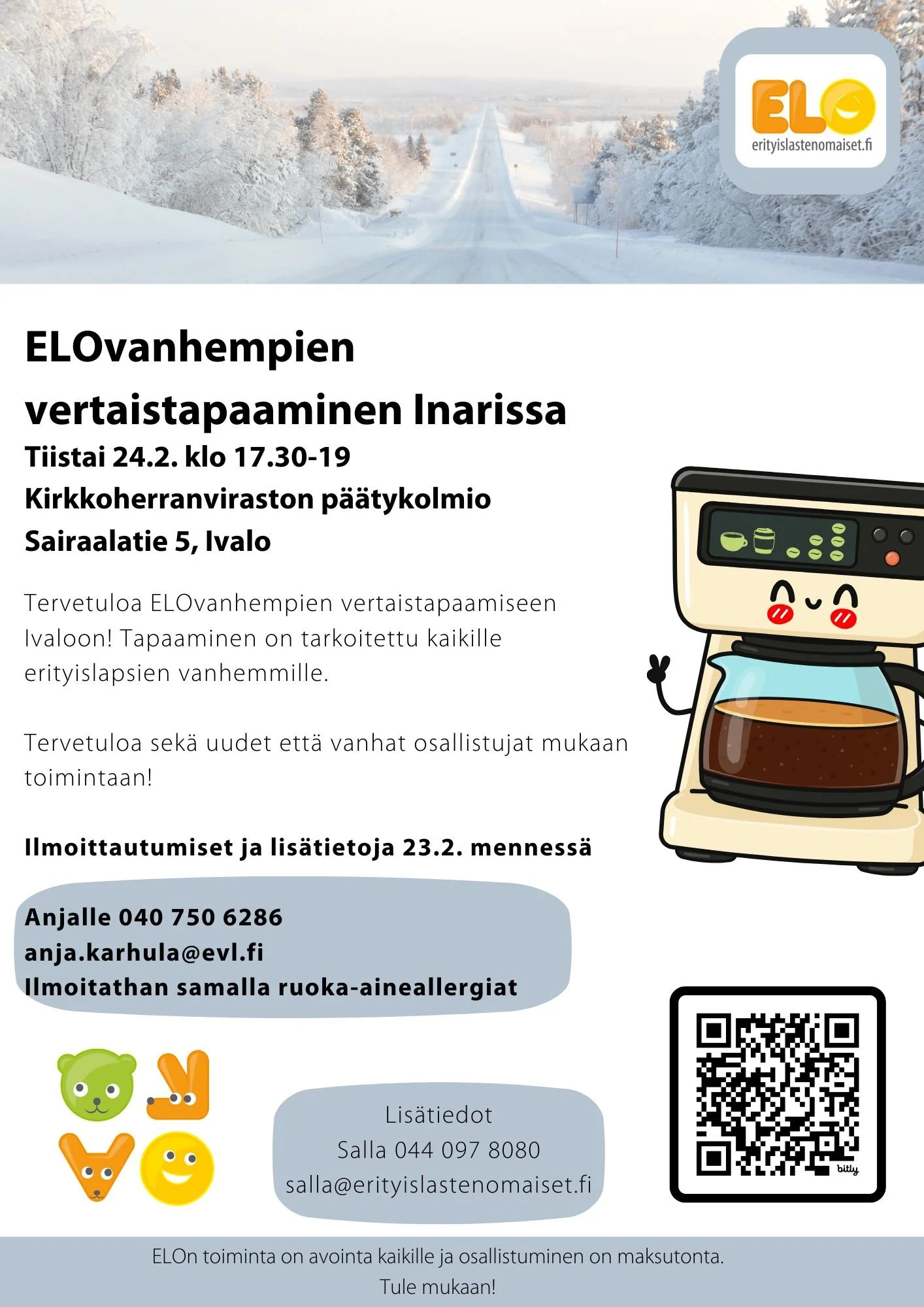 Tervetuloa ELOvanhempien vertaistapaamiseen Ivaloon! Tapaaminen on tarkoitettu kaikille erityislapsien vanhemmille.