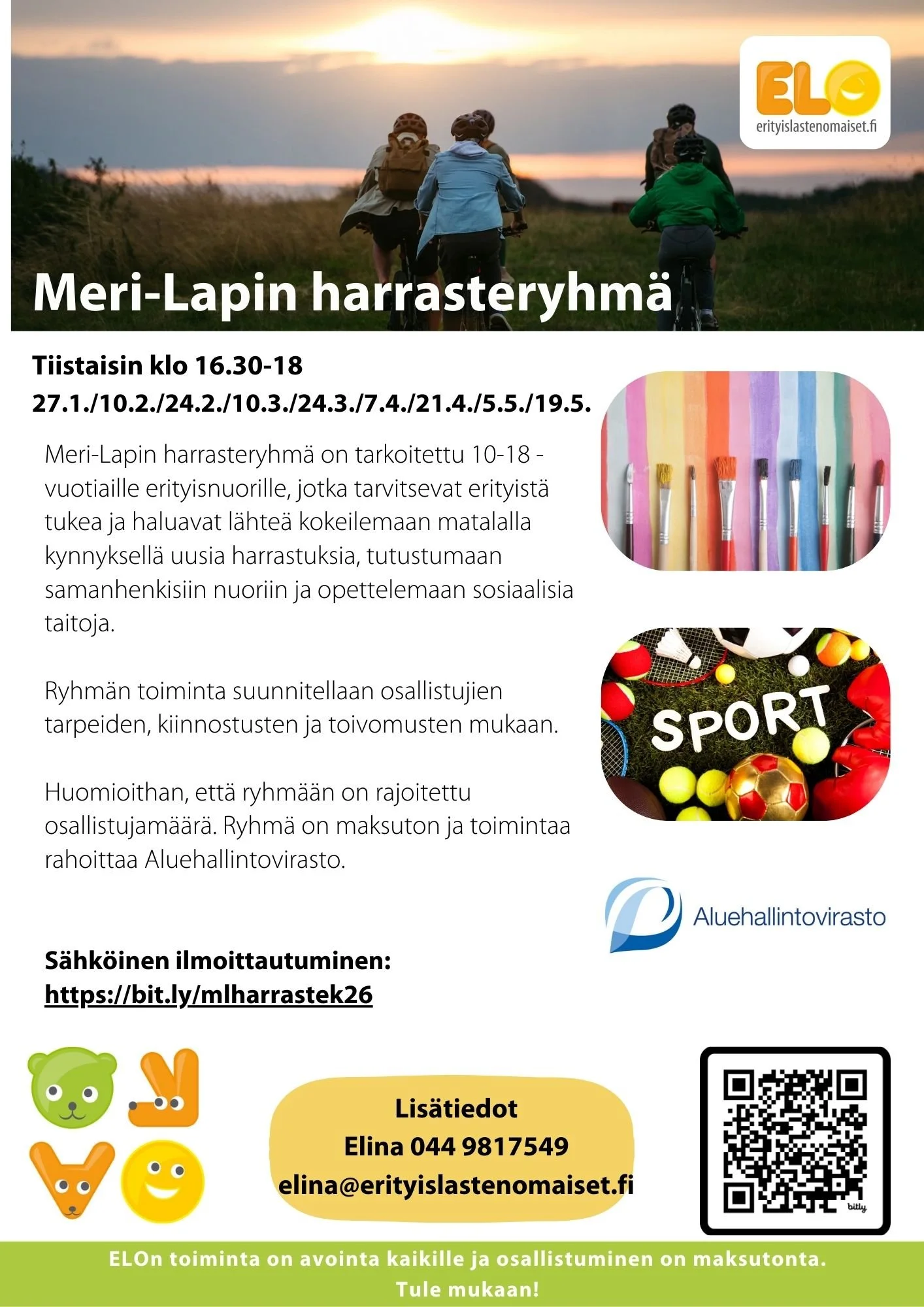 Huomioithan, että ryhmään on rajoitettu osallistujamäärä. Ryhmä on maksuton ja toimintaa rahoittaa Aluehallintovirasto.