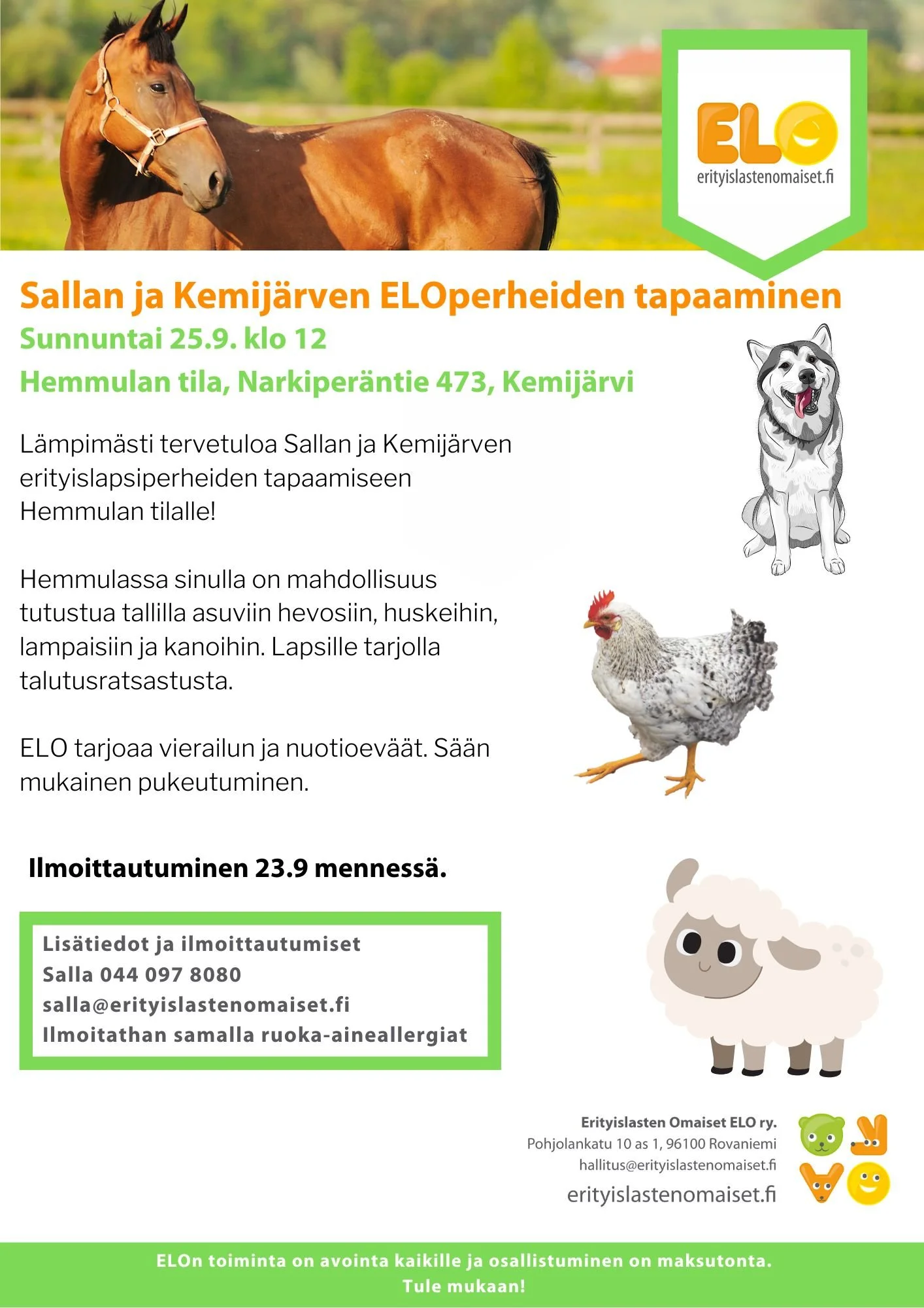 Lämpimästi tervetuloa Sallan ja Kemijärven erityislapsiperheiden tapaamiseen Hemmulan tilalle!