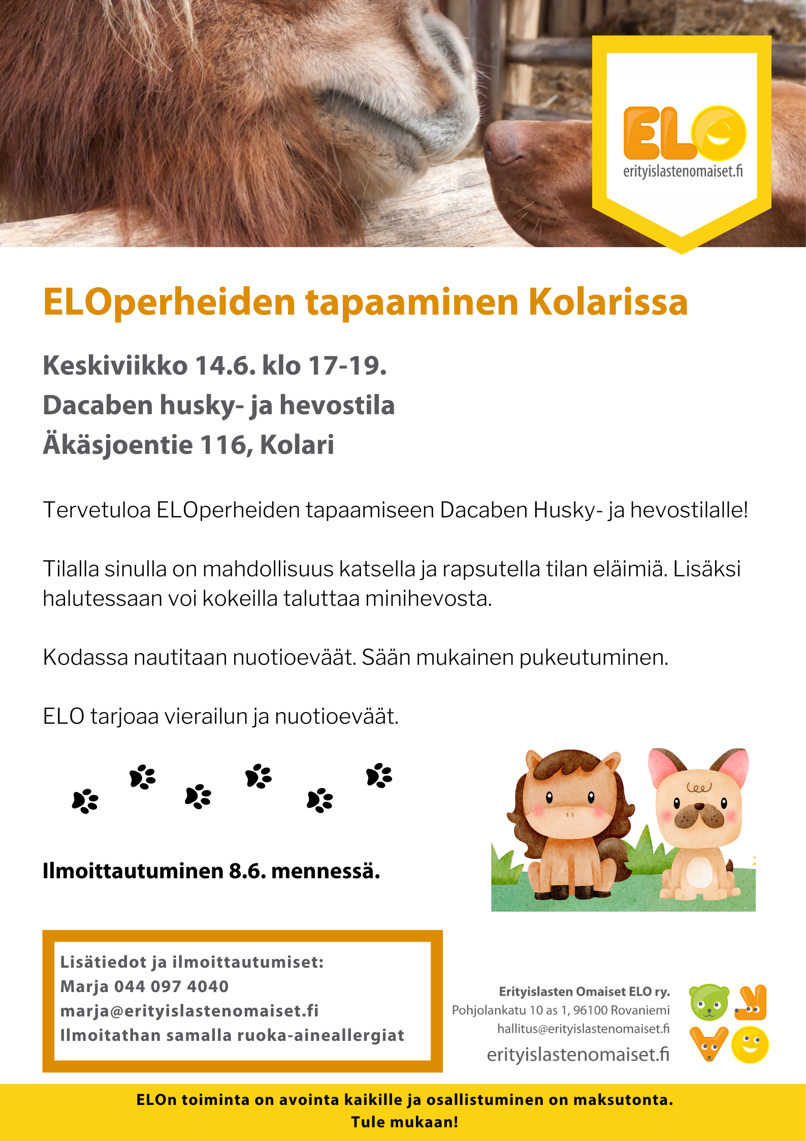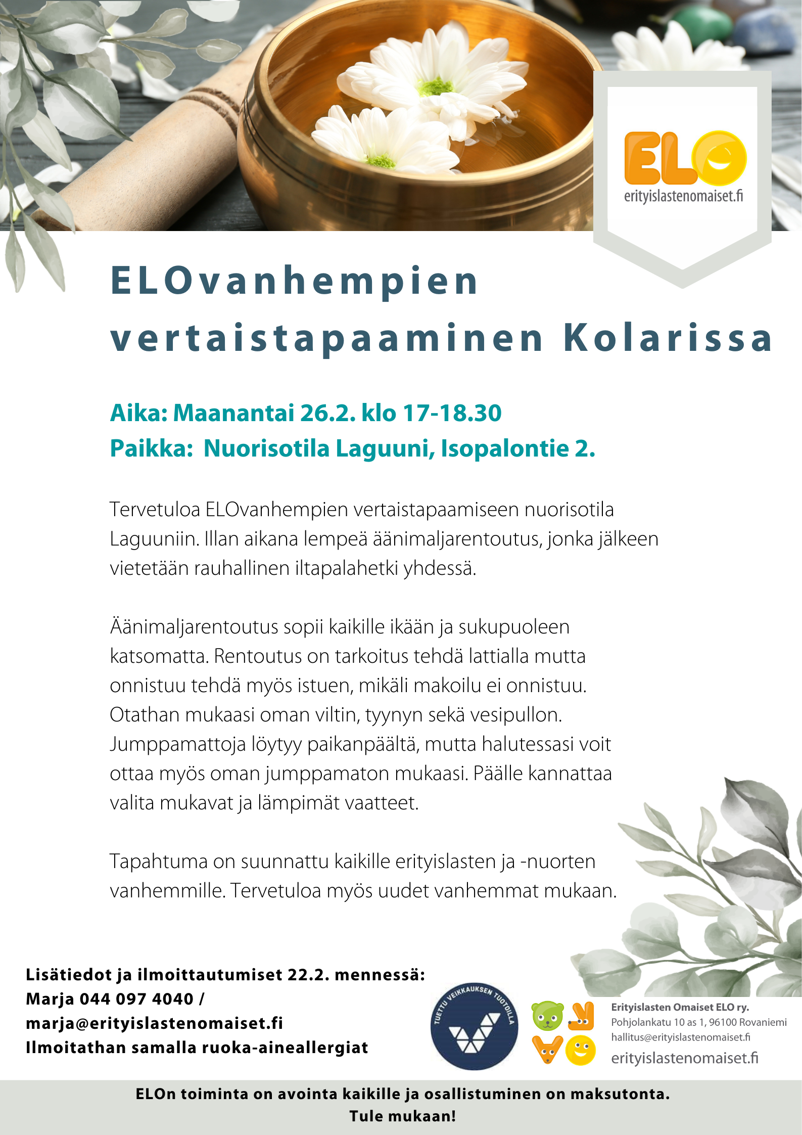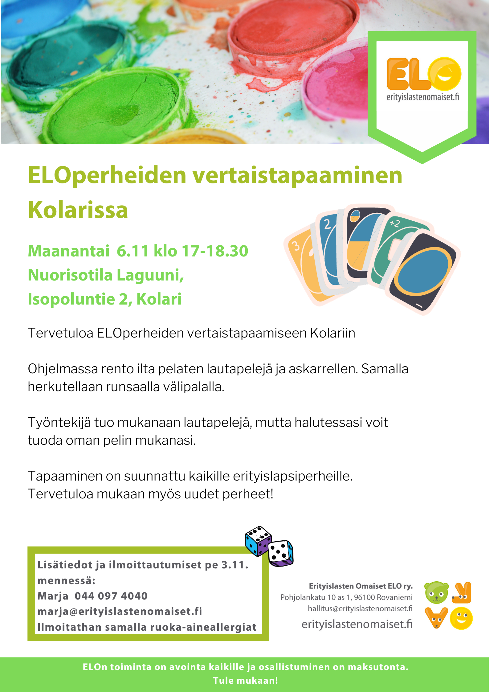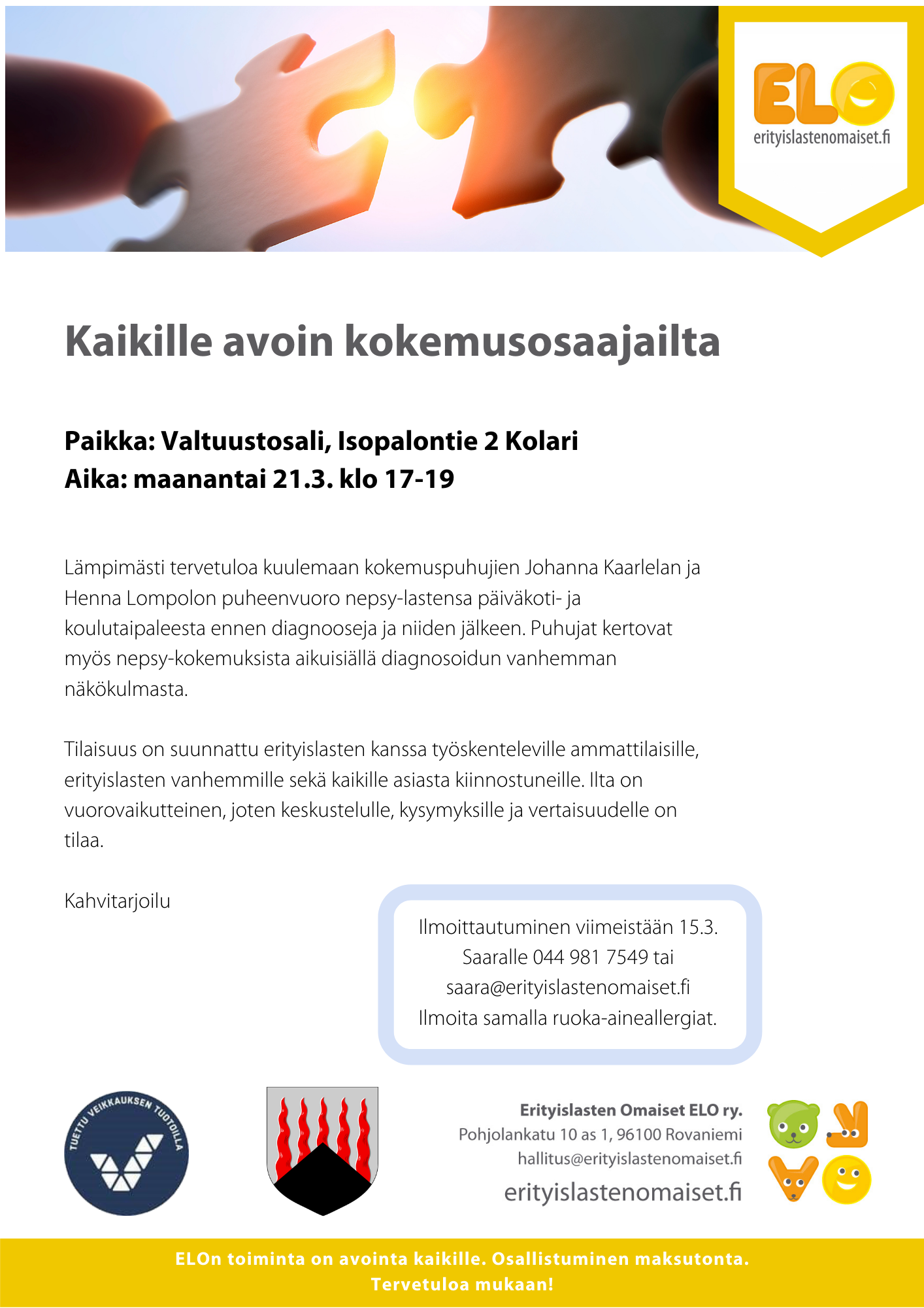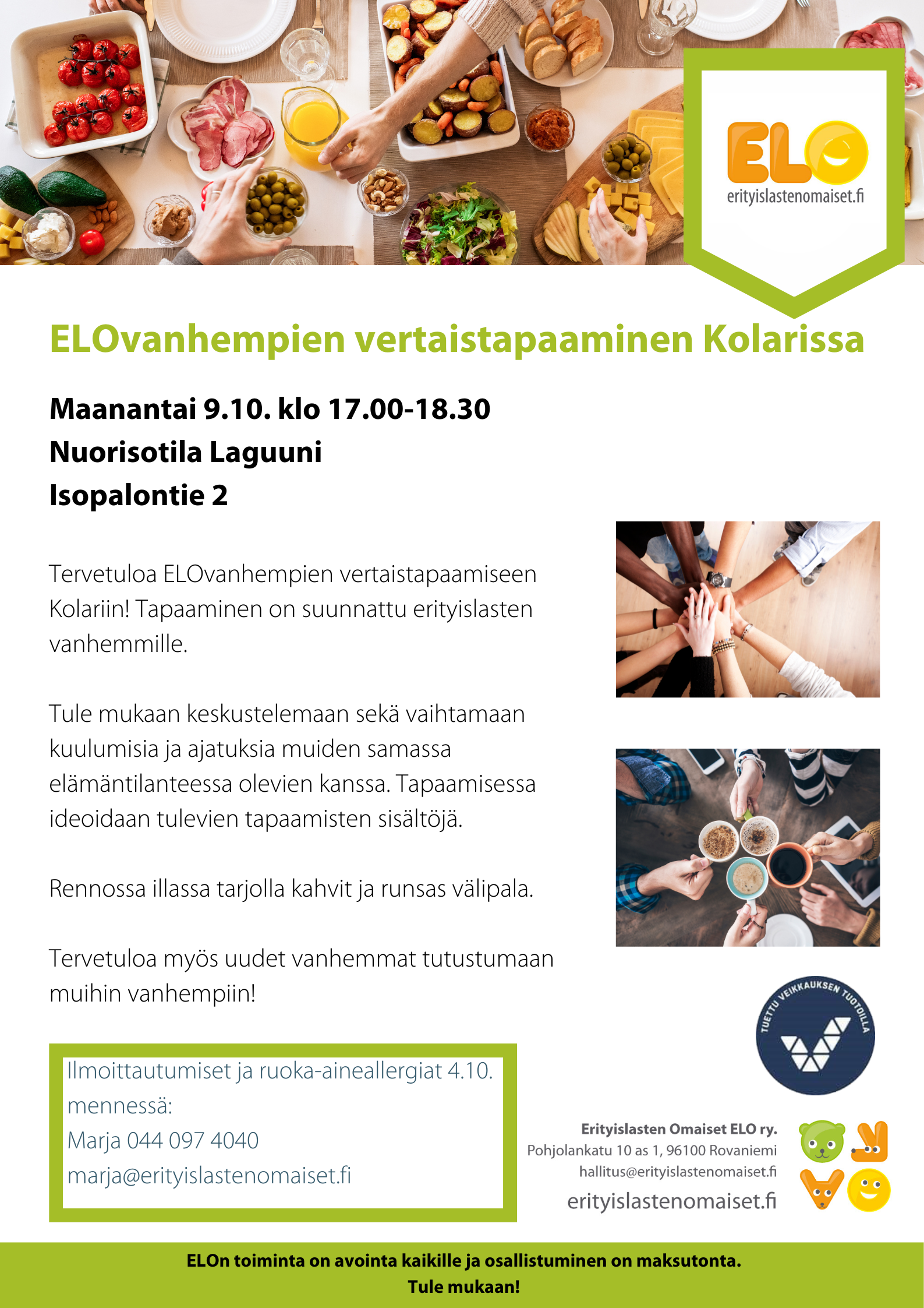 Lisätiedot: Elina 044 981 7549 / elina@erityislastenomaiset.fi