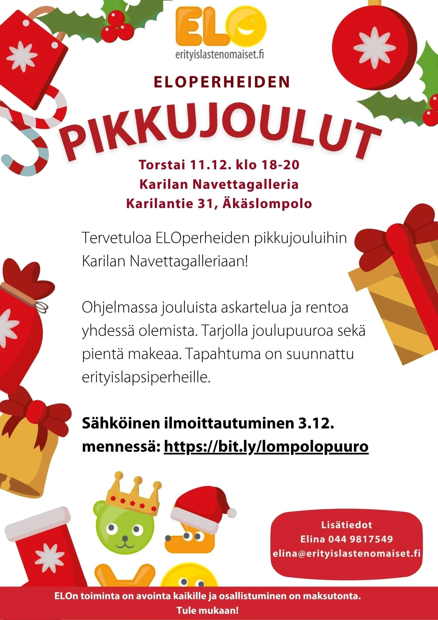 Tervetuloa ELOperheiden pikkujouluihin Karilan Navettagalleriaan!