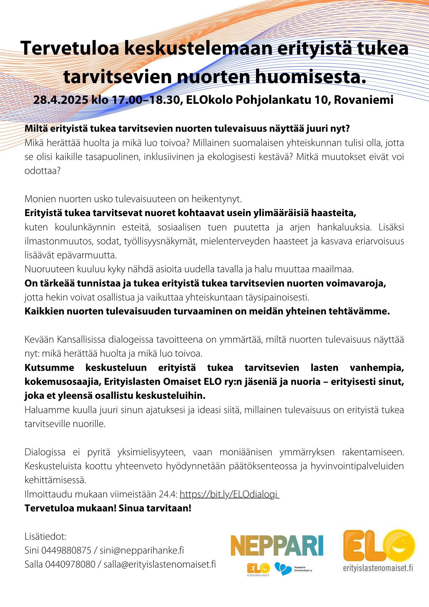 Keskustelun järjestävät: Neppari-hanke ja Erityislasten Omaiset ELO ry