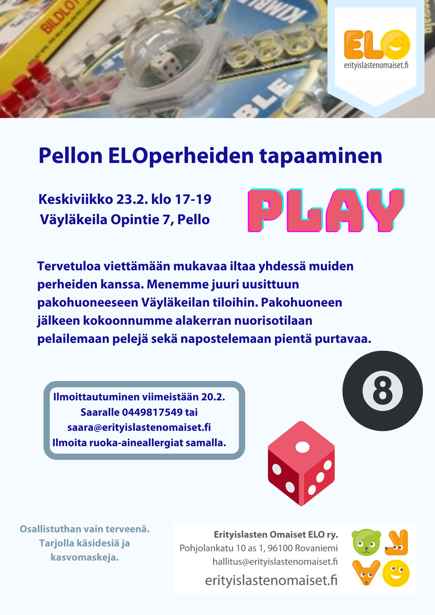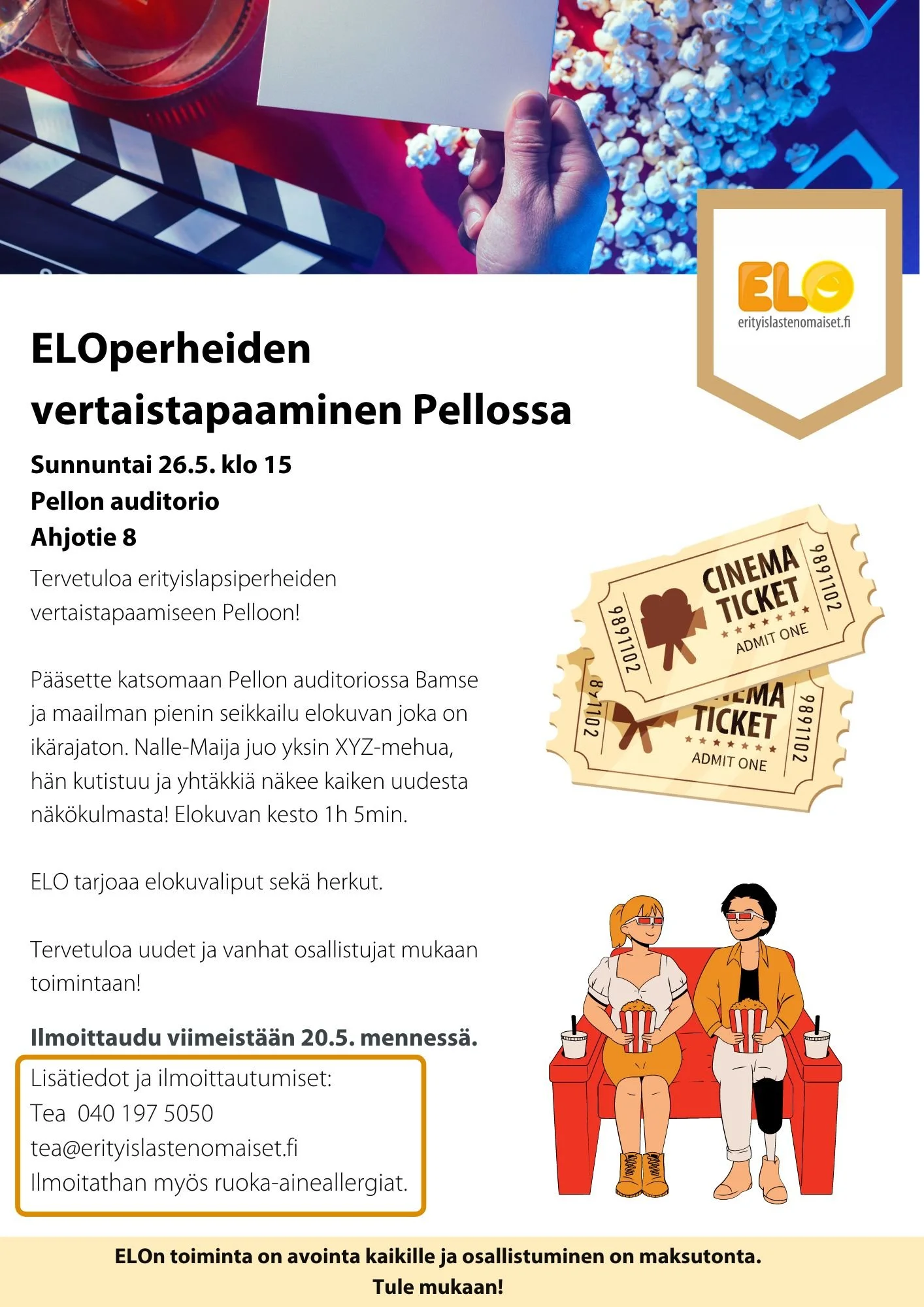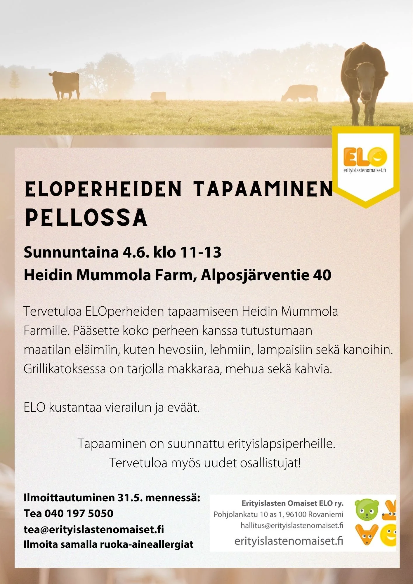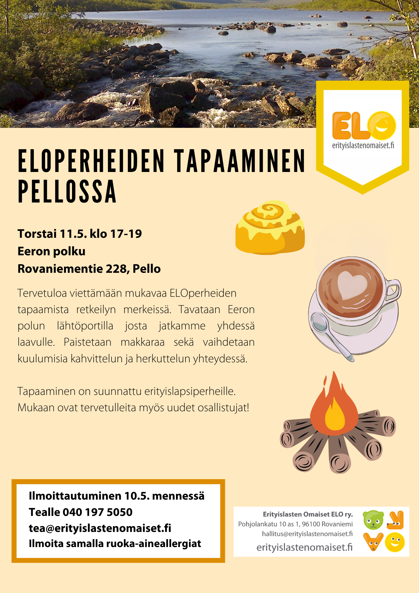 Tervetuloa ELOperheiden vertaistapaamiseen Pelloon! Tapaaminen on tarkoitettu kaikille erityislapsiperheille ja tapaamiseen voi osallistua yli kuntarajojen.