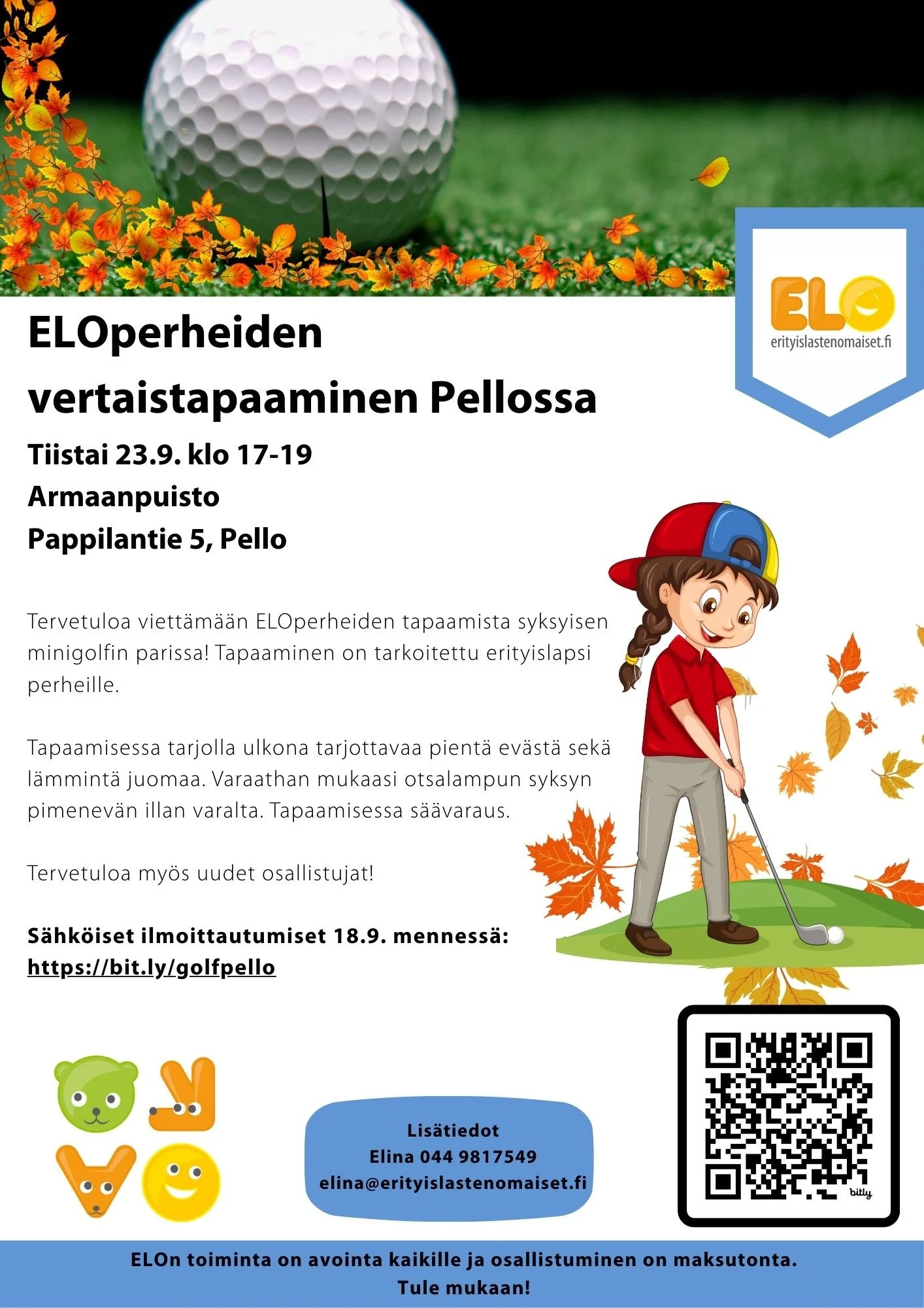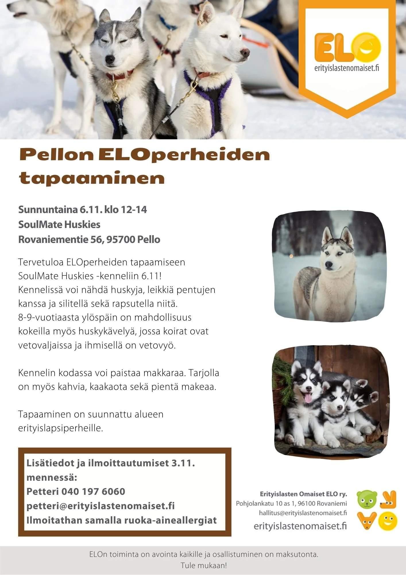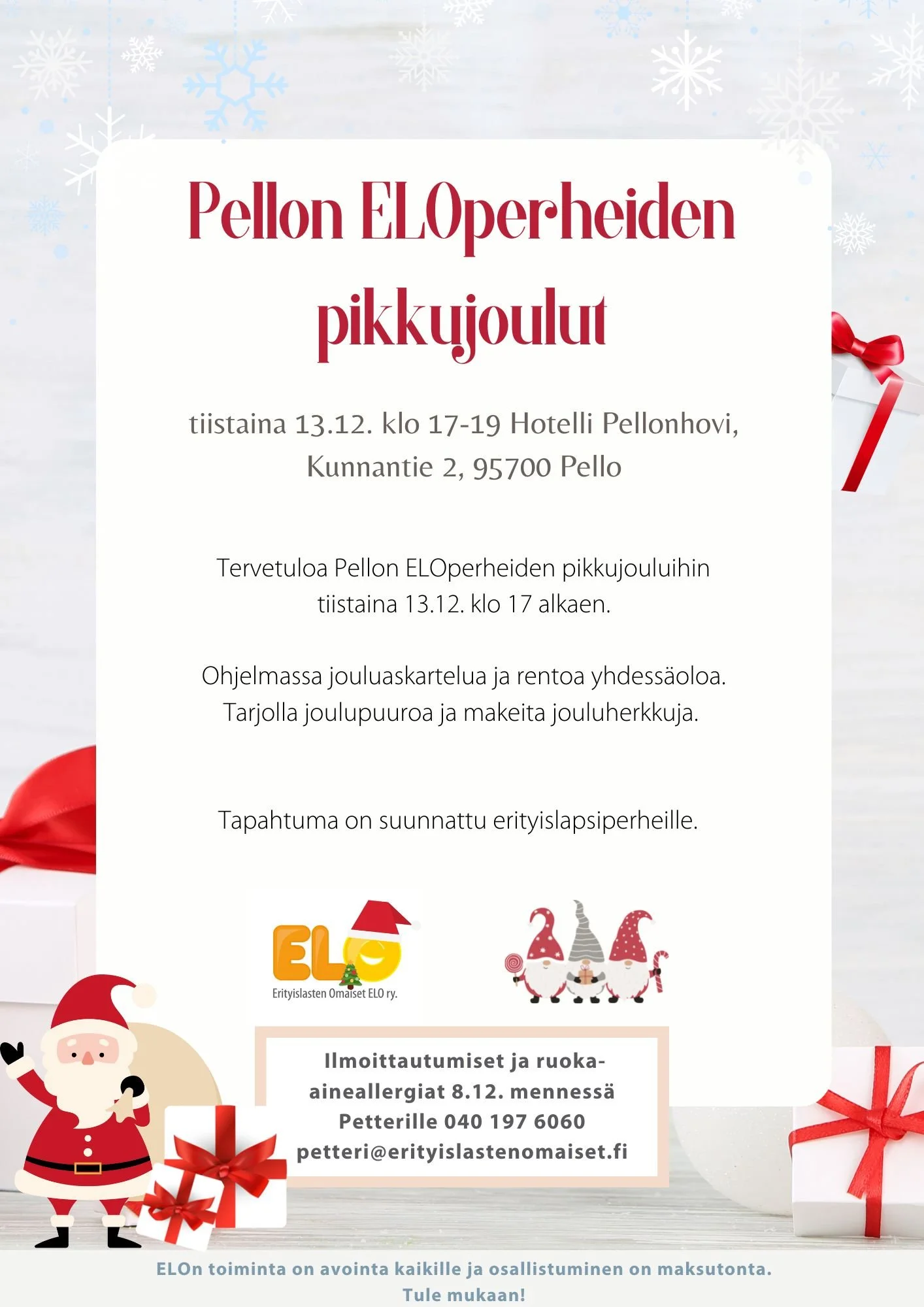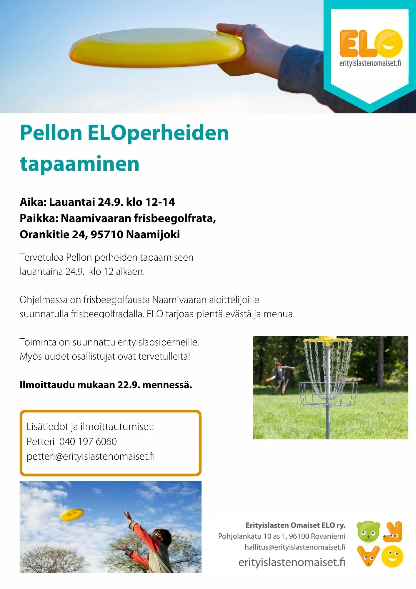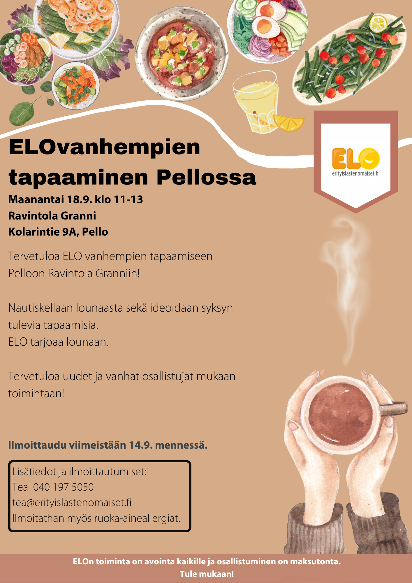Tervetuloa ELOperheiden vertaistapaamiseen Pelloon! Tapaaminen on tarkoitettu kaikille erityislapsiperheille ja tapaamiseen voi osallistua yli kuntarajojen.