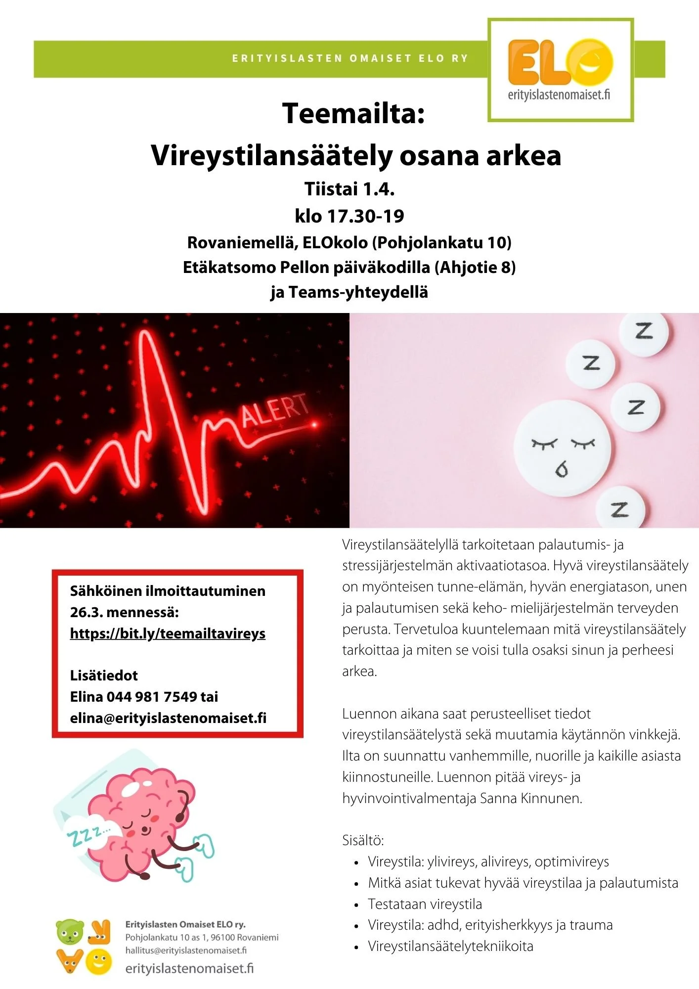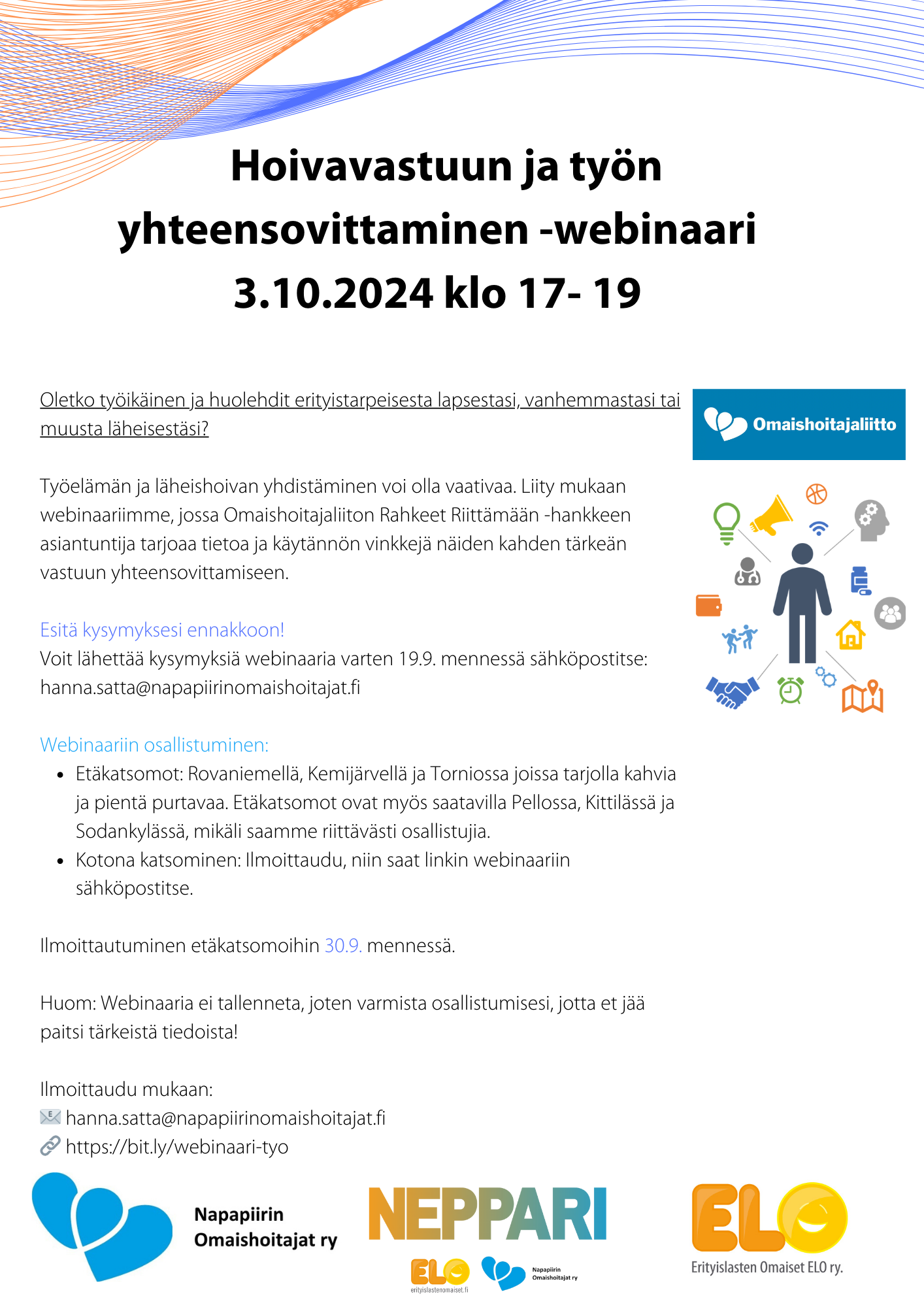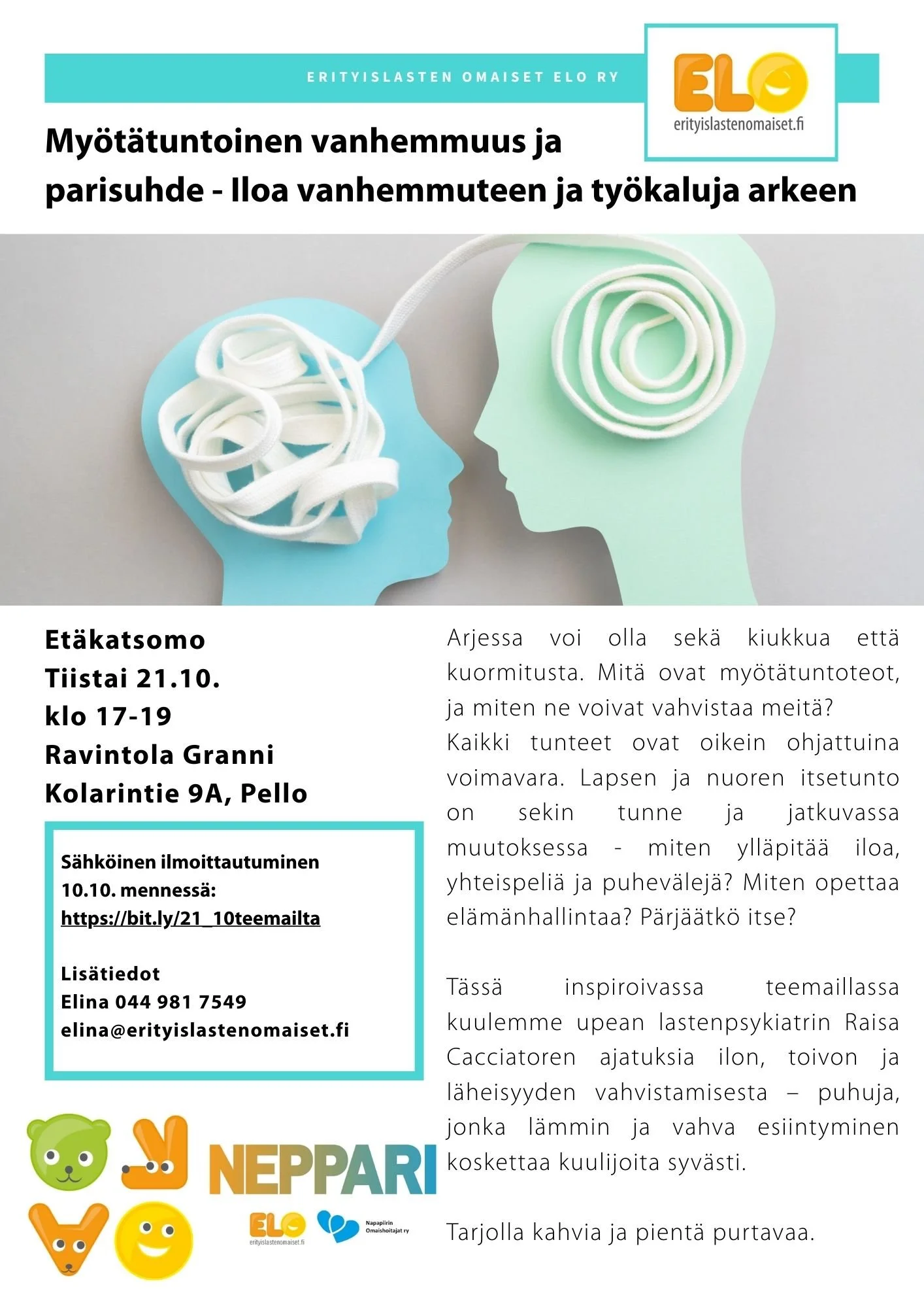 Lisätiedot: Elina 044 097 4040 / elina@erityislastenomaiset.fi