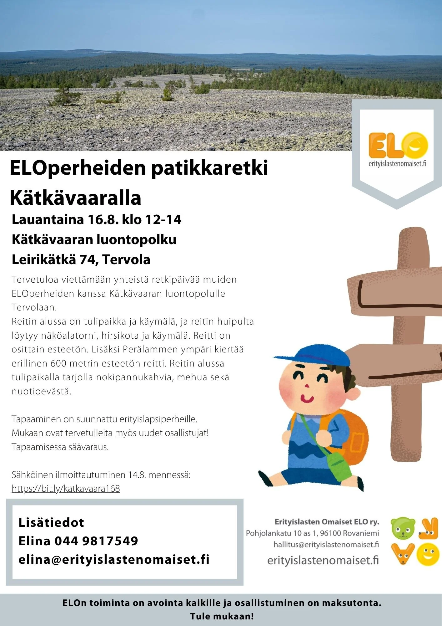 Tervetuloa viettämään yhteistä retkipäivää muiden ELOperheiden kanssa Kätkävaaran luontopolulle Tervolaan!