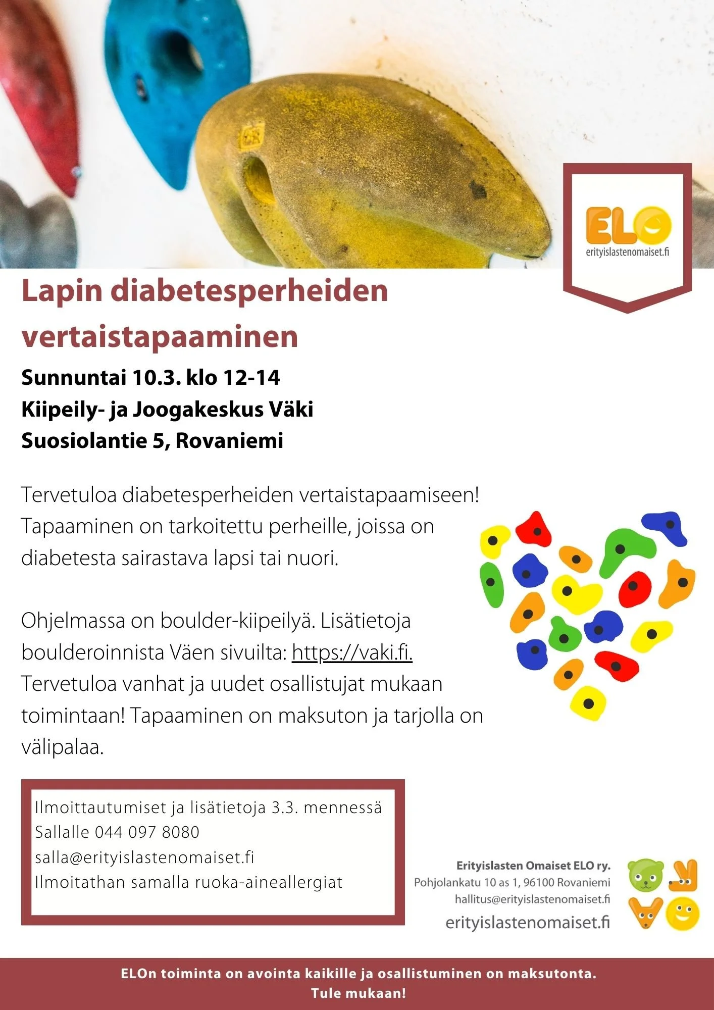 Ilmoittautumiset ja lisätietoja 3.3. mennessä