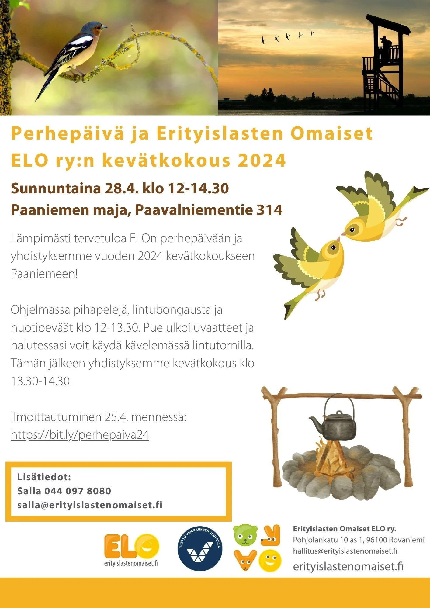 Lämpimästi tervetuloa ELOn perhepäivään ja yhdistyksemme vuoden 2024 kevätkokoukseen Paaniemeen!